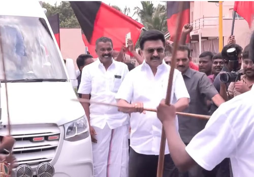 தமிழக முதல்வர் மு.க. ஸ்டாலின், தென்காசி மாவட்டத்திற்கு மேற்கொண்ட பயணத்தின் போது ஒரு அரசு விழாவில் கலந்துகொண்டு, மாணவர்களுடன் உற்சாகமாக சிலம்பம் சுற்றினார்.