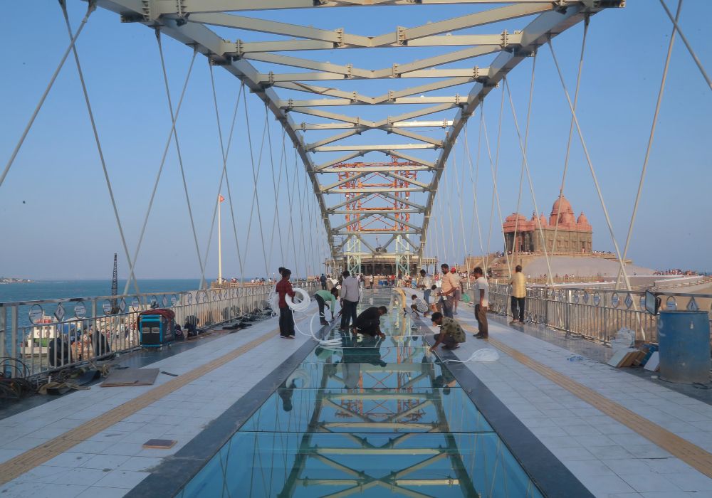 இந்த பாலம் கடந்த டிசம்பர் 30-ம் தேதி தமிழக முதல்வர் மு.க.ஸ்டாலின் திறந்து வைத்தார். உலகப்புகழ்பெற்ற சுற்றுலா தலமாகும் கன்னியாகுமரிக்கு விடுமுறை நாட்களிலும் ஆயிரக்கணக்கான சுற்றுலா பயணிகள் வருகை தருகிறார்கள். அவர்கள் திருவள்ளுவர் சிலையையும், கண்ணாடி இழை பாலத்தையும் சுவாரஸியமாக பார்த்து கடலின் அழகை அனுபவித்து, செல்பி எடுத்துக் கொண்டிருக்கின்றனர்.