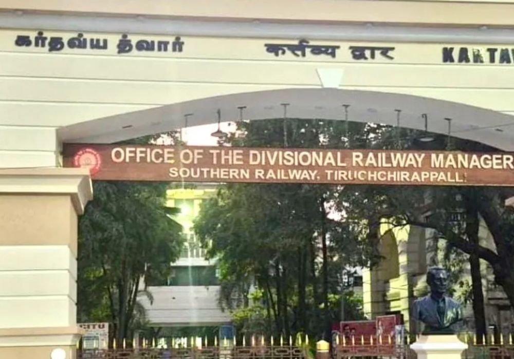 புதியதாக கட்டி முடிக்கப்பட்ட திருச்சி மண்டல ரெயில்வே அலுவலகத்தின் நுழைவு வாயிலுக்கு “ கர்தவ்ய த்வார்” என இந்தியில் பெயர் வைத்துள்ளது தெற்கு ரயில்வே.