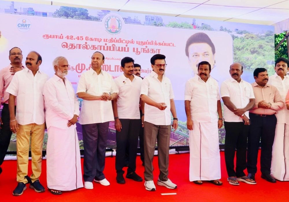 ராஜா அண்ணாமலைபுரத்தில் அமைந்துள்ள தொல்காப்பியர் பூங்கா, முழுமையான நவீன புனரமைப்புக்குப் பிறகு இன்று தமிழக முதலமைச்சர் மு.க. ஸ்டாலின் திறந்து வைத்து மக்களிடம் பயன்பாட்டுக்காக ஒப்படைத்தார்.