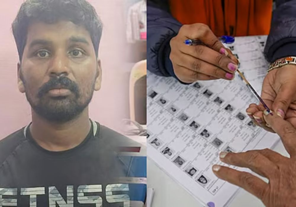 இந்த நேரத்தில் அவர் வாக்கை பதிவு செய்துவிட்டார். அவர் வாக்கை பதிவு செய்துவிட்டு வந்த போது காங்கிரஸ் ஏஜெண்டு தடுத்து நிறுத்தி அவர் மீது சந்தேகம் இருப்பதாக கூறி போலீசாரிடம் ஒப்படைத்தார்.